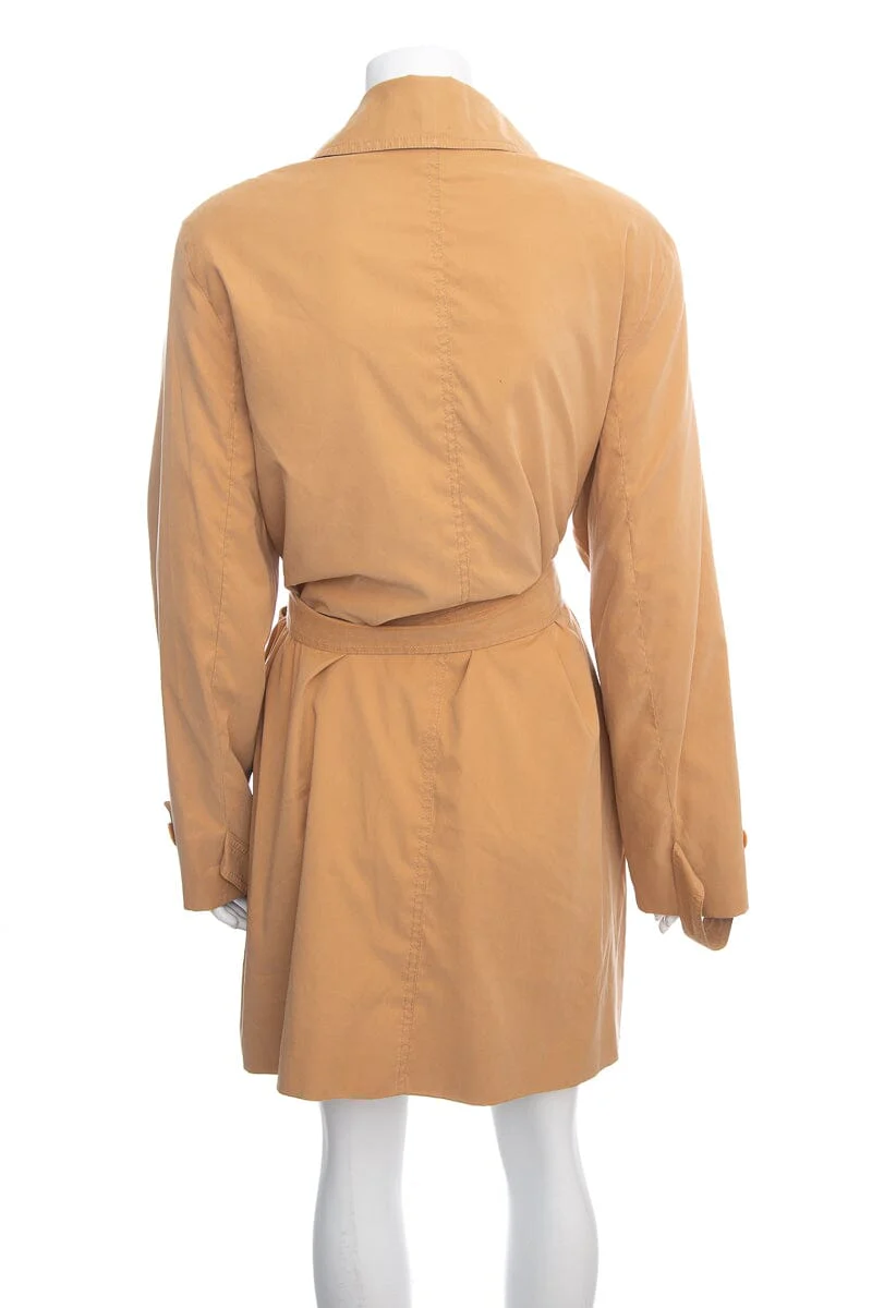 Celine Camel Trench Coat with Large Pocket and Belt Detail. This item is in vintage; some marks on fabric.