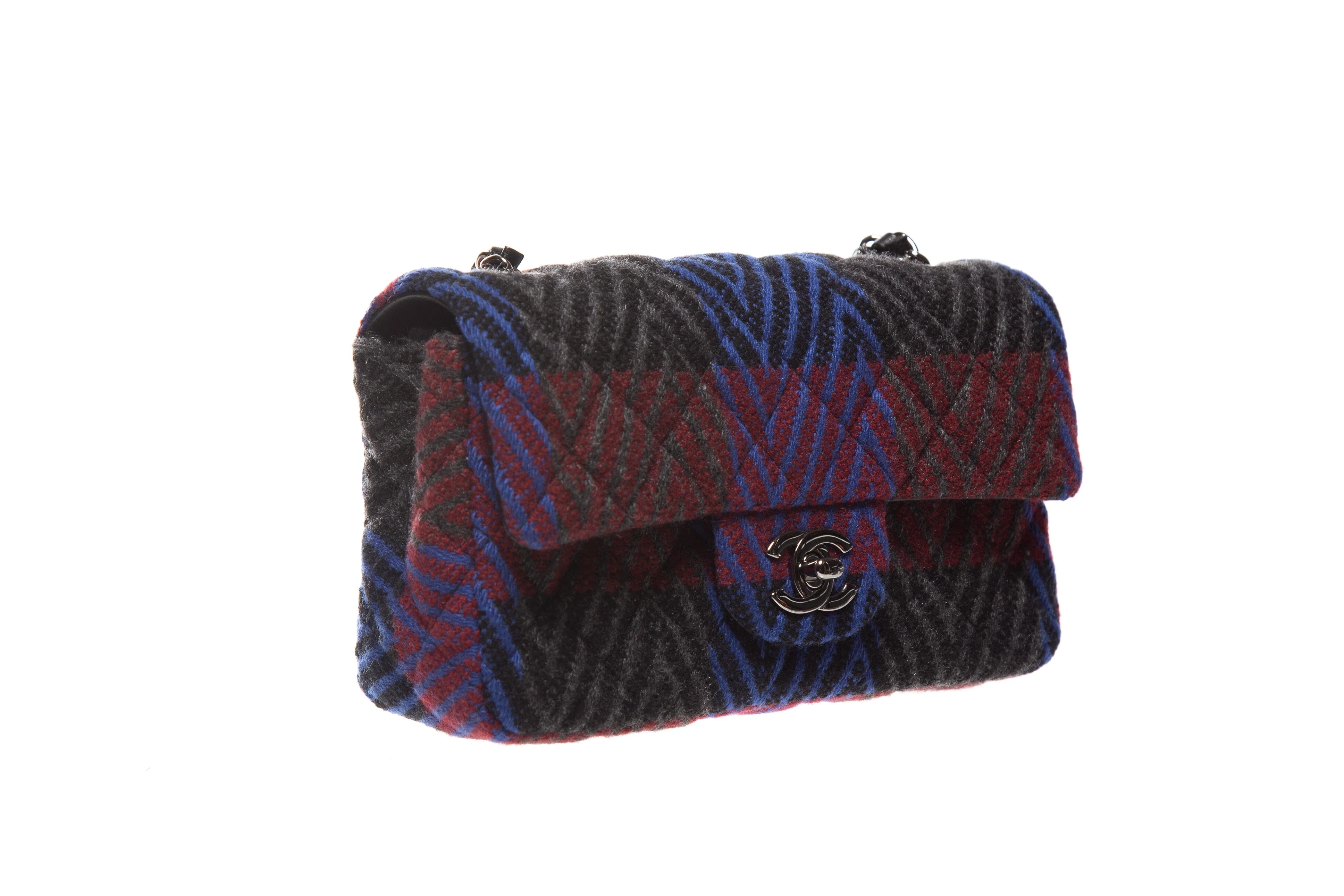 Chanel Black/Red/Blue Tweed Mini Matelasse 20 Handbag. This item is in very good condition.