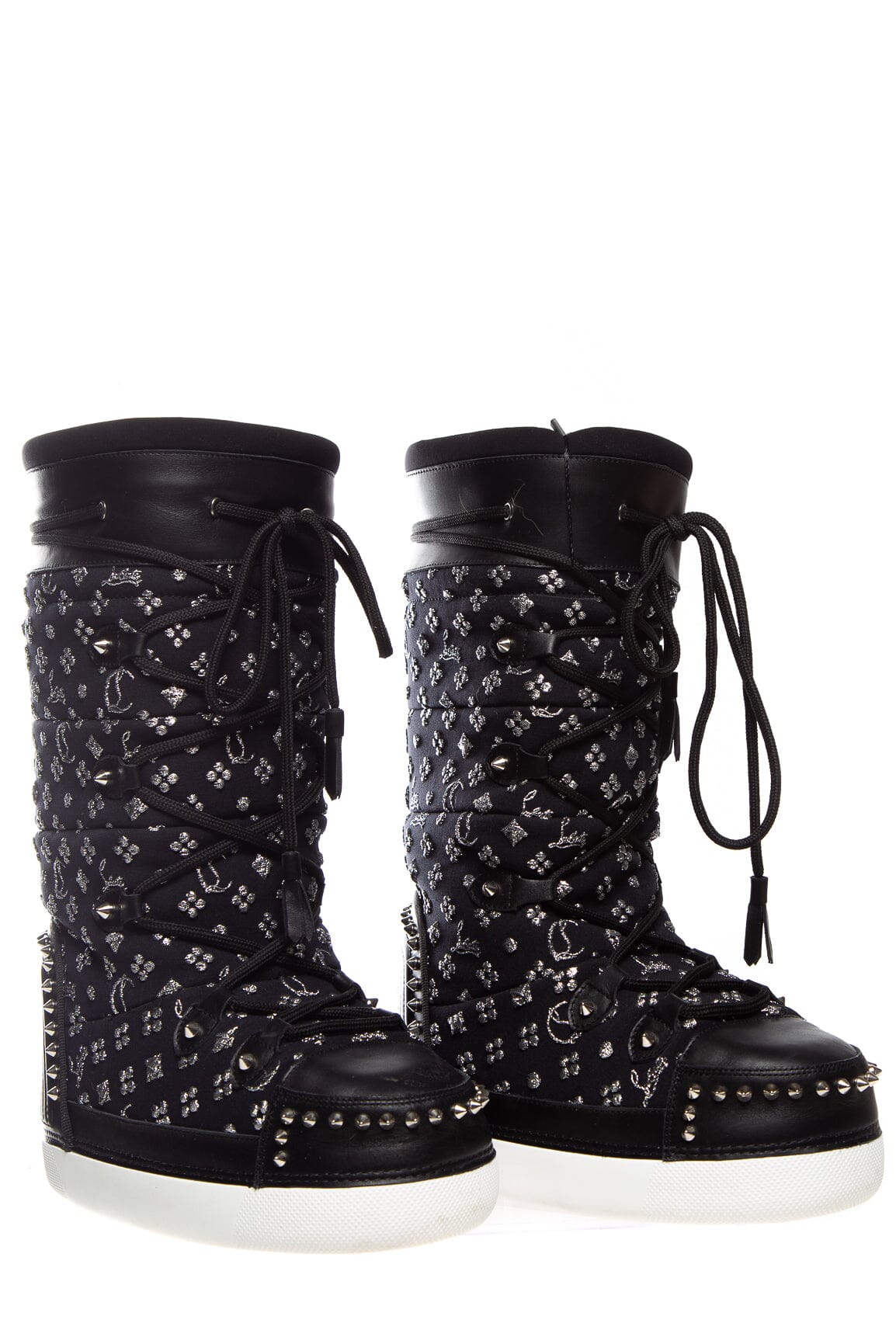 Christian Louboutin Black Aspen Limited Edition Moon Boots w/Silver and Rockstud Detail.