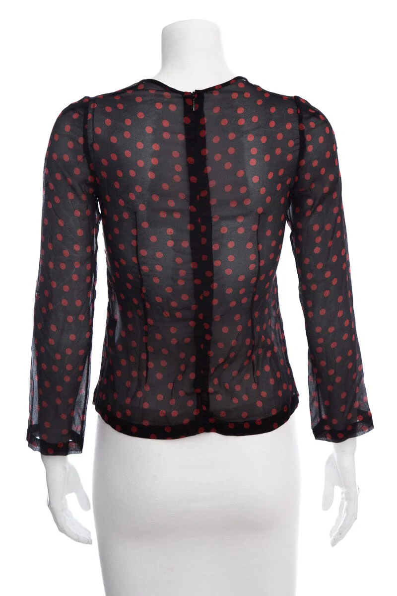 Dolce & Gabbana Red/Black Long Sleeve Sheer Polka Dot Blouse. This item is in very good condition.