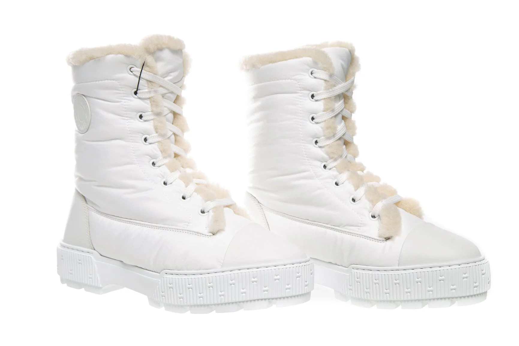 Hermès White Nylon Lace Up Boots. This item is in very good condition.