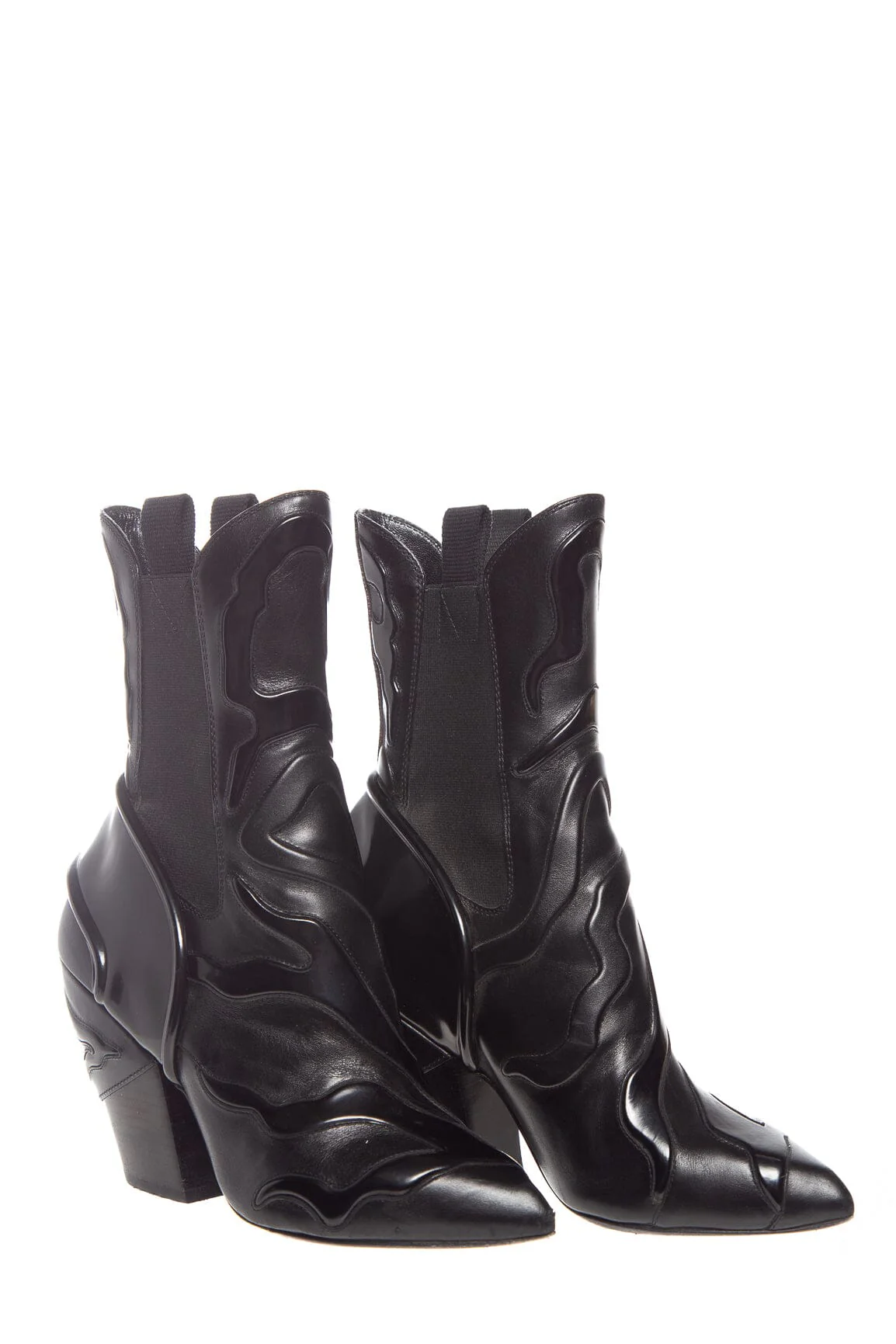 Louis Vuitton Black Fireball Boots. This item is in good condition; some wear on bottoms and slight scuffing on toe points.