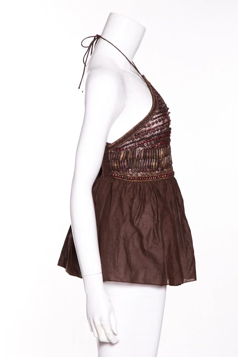 Ralph Lauren Brown Key Hole Beaded Halter Top SZ 8 Sale CO