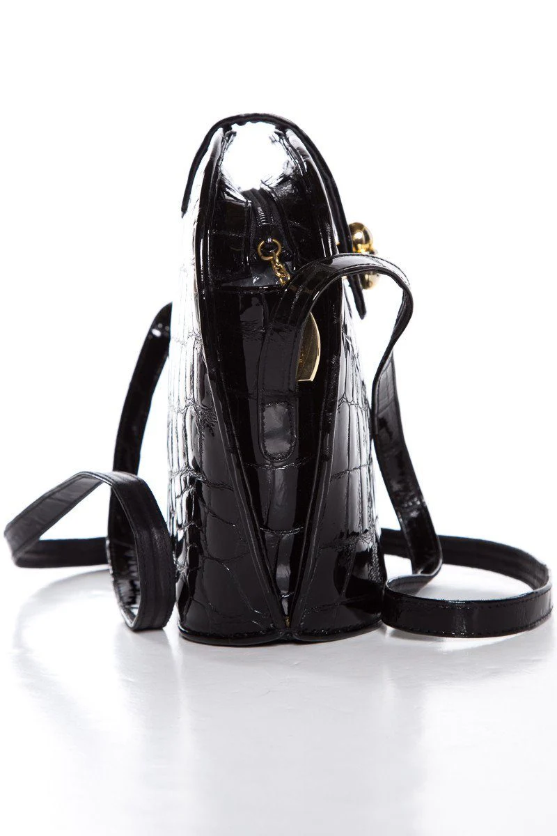Stuart Weitzman Black Croco Embossed Patent Shoulder Bag