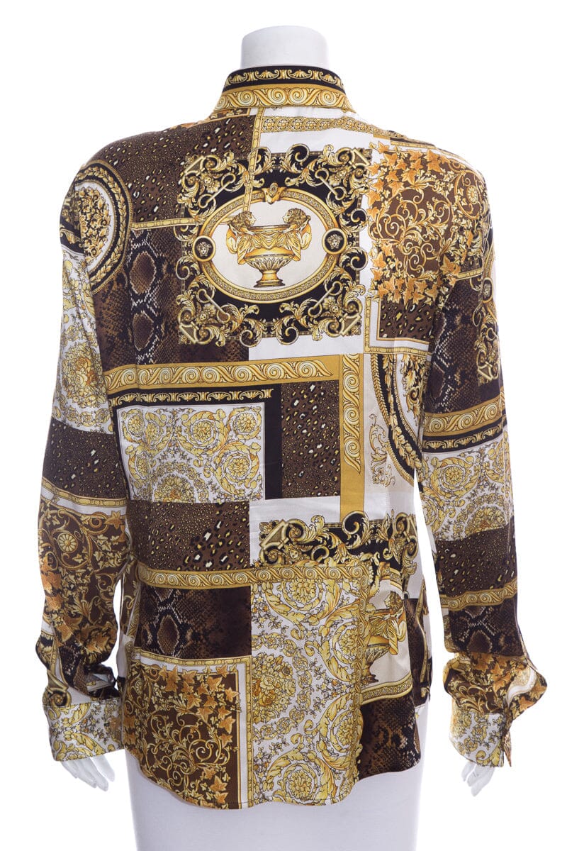 Versace Gold/Black Silk Button Up Printed Shirt. This item is in very good condition.